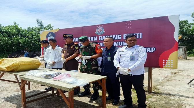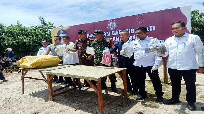 Barang bukti yang dimusnakan berupa 3.976 pasang sepatu bekas dan 8.170 buah tas begas dengan berbagai jenis, merk, ukuran dan warna. 9.480 pasang sepatu bekas berbagai merk. Pemusnahan barang bukti tersebut juga disaksikan oleh warga setempat serta disaksikan oleh pejabat penting yang menghadiri acara tersebut.