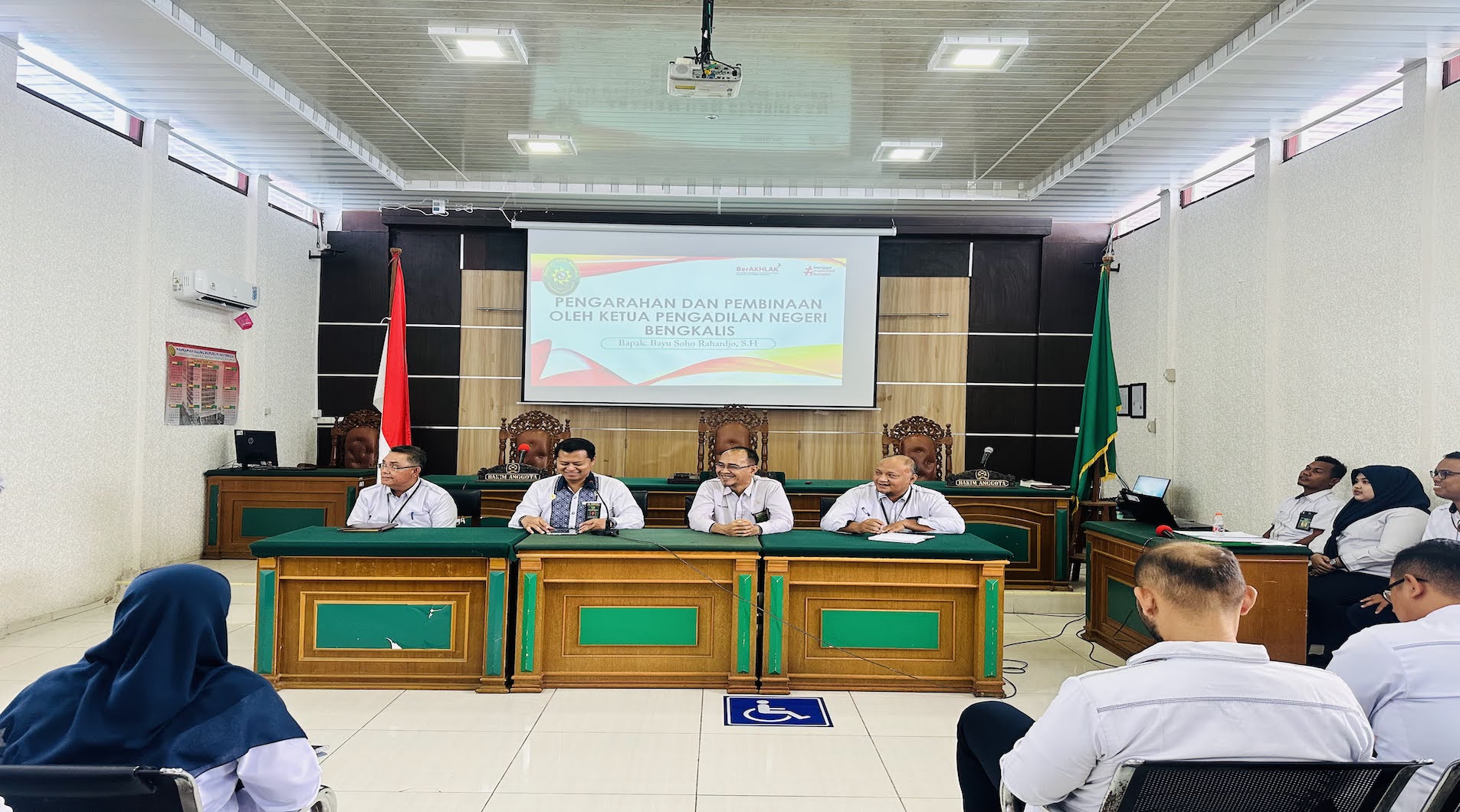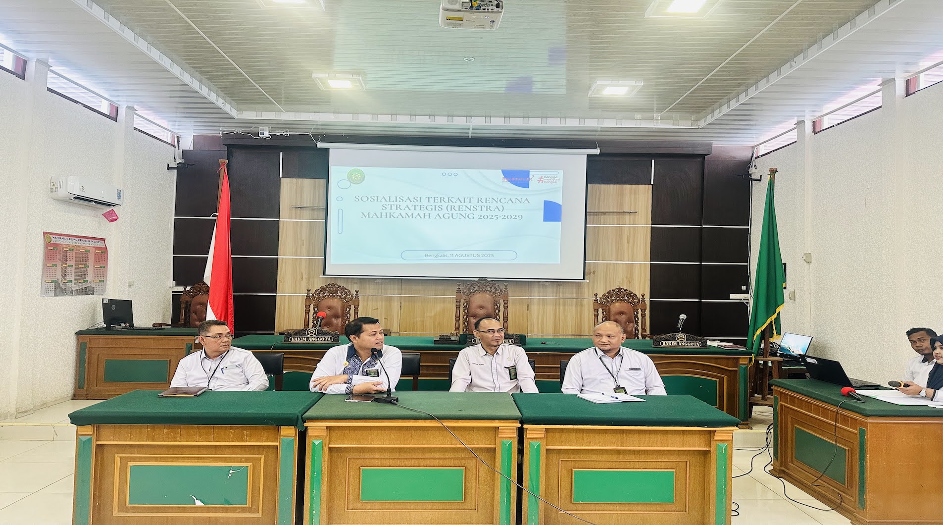 Pengadilan Negeri Bengkalis menggelar kegiatan Sosialisasi Rencana Strategis (Renstra) Mahkamah Agung Republik Indonesia sebagai bagian dari upaya mewujudkan peradilan yang agung, transparan, dan akuntabel. Acara yang berlangsung di ruang sidang utama ini dihadiri oleh seluruh hakim, pejabat struktural dan fungsional, serta pegawai Pengadilan Negeri Bengkalis.